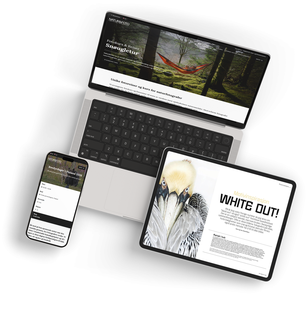 Samtidig holder vi en rekke kurs, workshop, reiser, og er på messer i hele Norden. Her treffer vi den sterkeste målgruppen, selve kjernen av de ivrigste naturfotografene. Vi satser på kvalitetsbevisste annonsører for å tilfredsstille våre lesere.